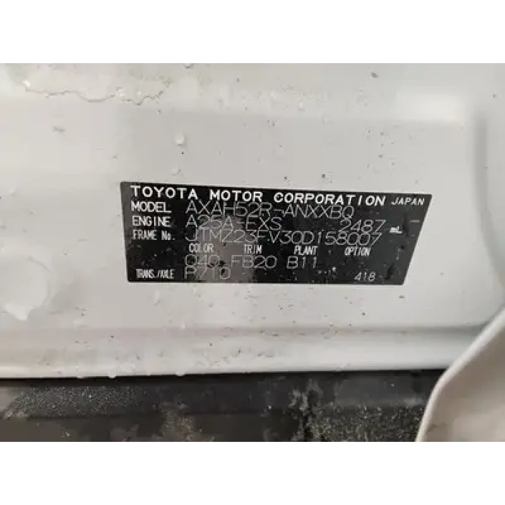 | Vehicle Identification Number (VIN) | JTMZ23FV30D158007 |